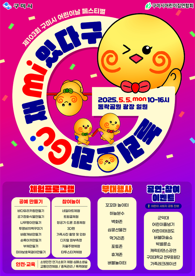 - 행사명: 제103회 구미시 어린이날 페스티벌 '놀러오라Gu 재mi있다구'