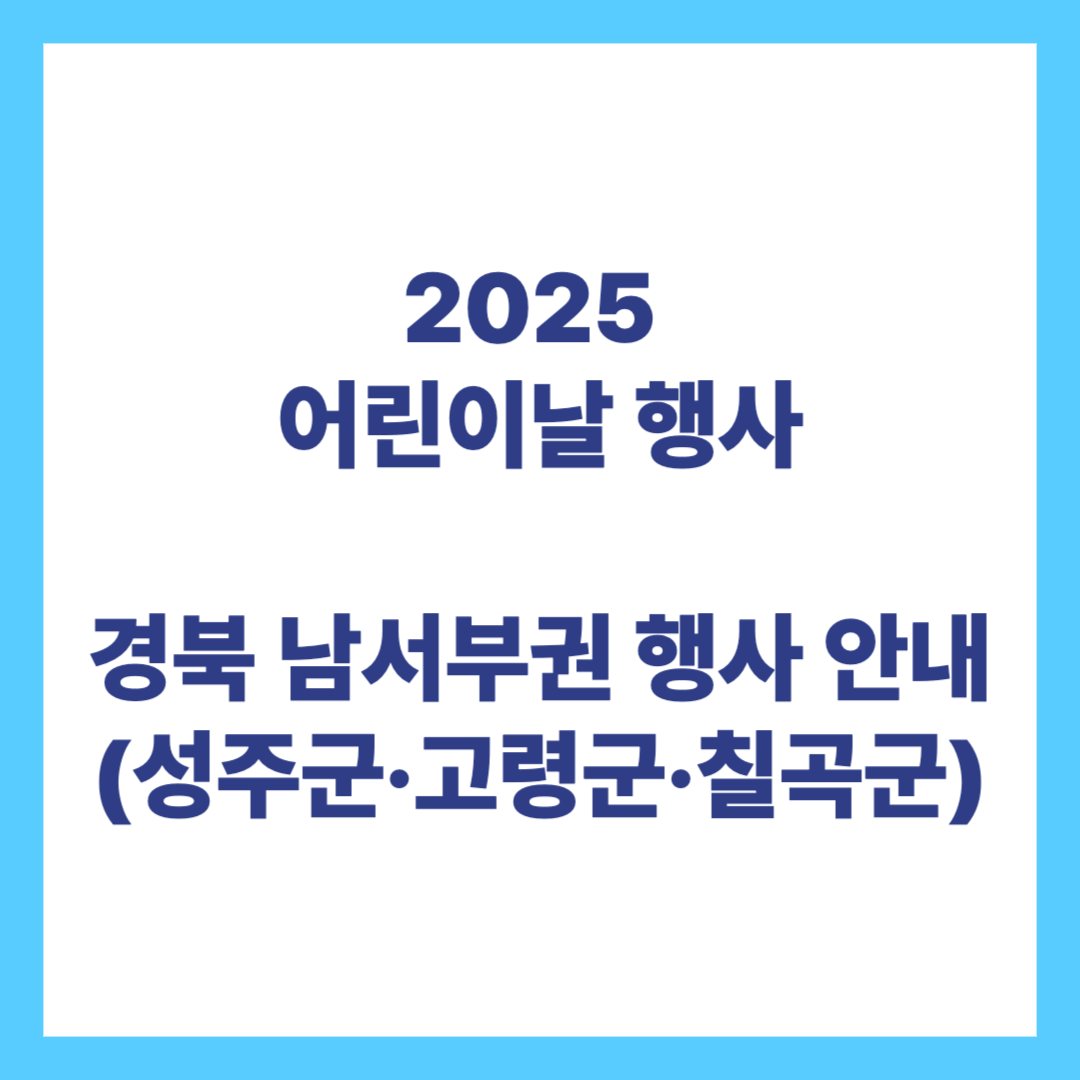 이번 2025년 경북 남서부 지역인 성주군, 고령군, 칠곡군에서 가족 모두가 함께 즐길 수 있는 어린이날 행사가 펼쳐집니다.