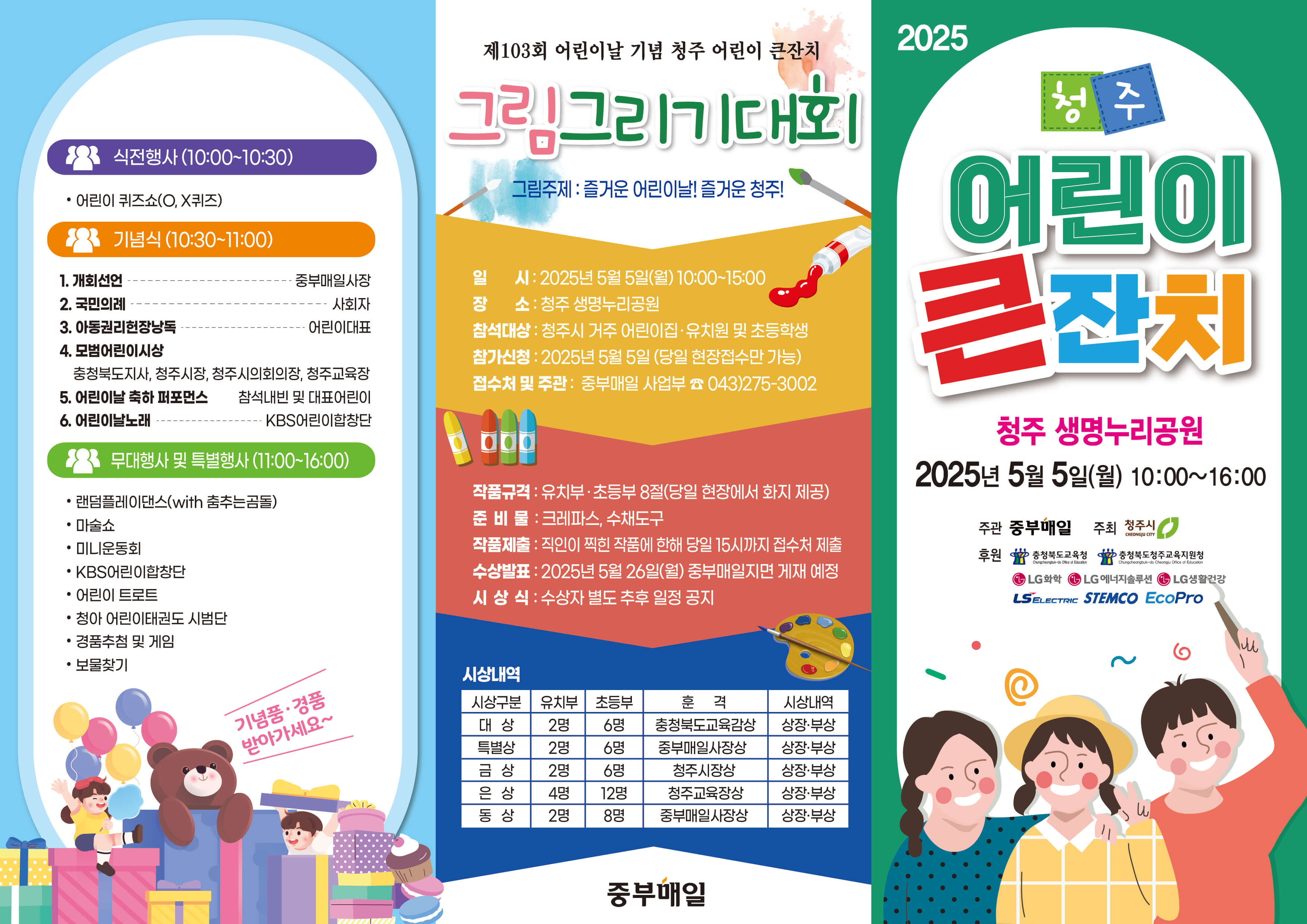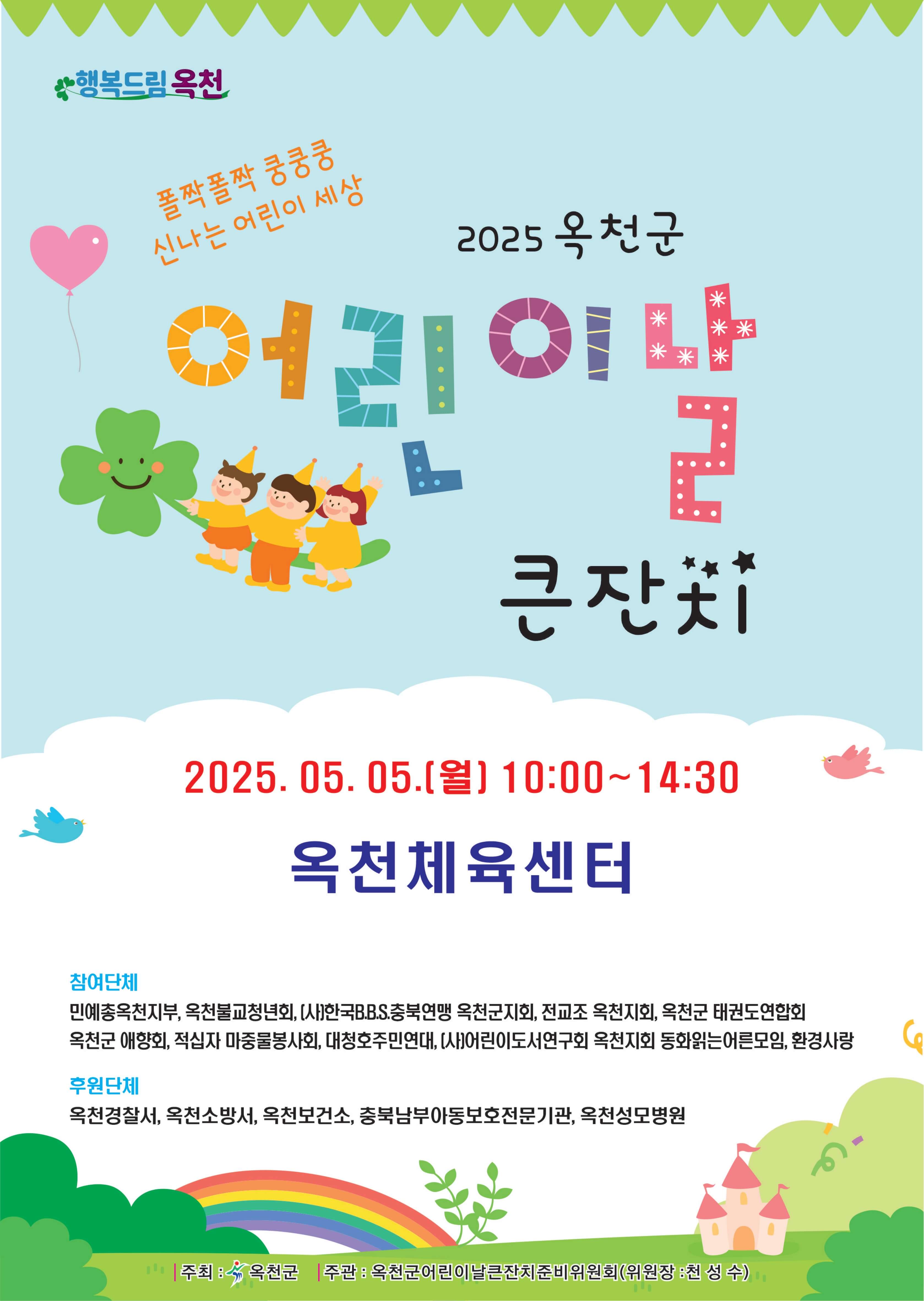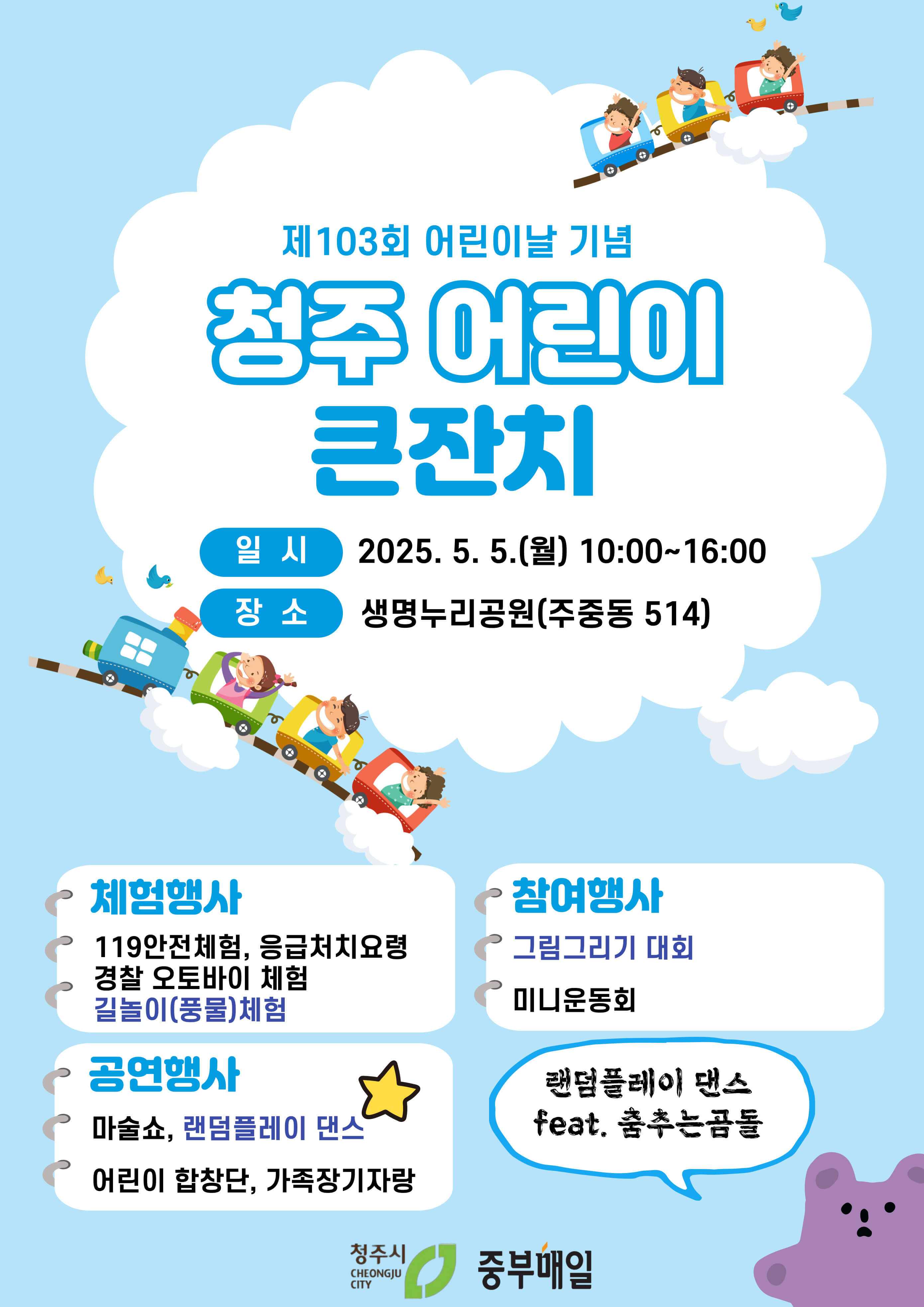 2025년 5월 5일 어린이날, 충북 청주·괴산·옥천·제천 등 다양한 곳에서 아이들을 위한 다채로운 행사가 열립니다.