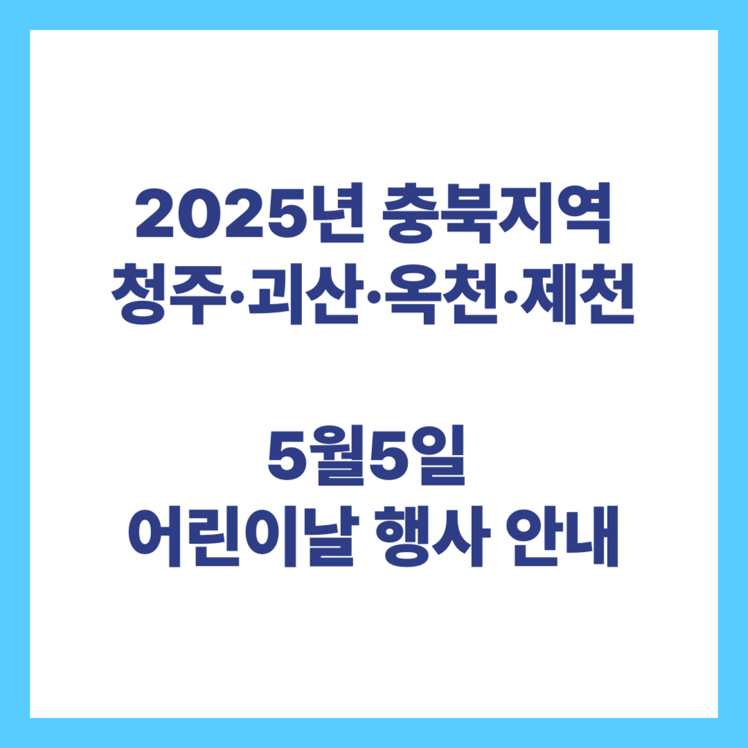 2025년 5월 5일 어린이날에 충청북도 청주시, 괴산군, 옥천군, 제천시에서 어린이날 행사가 열립니다.